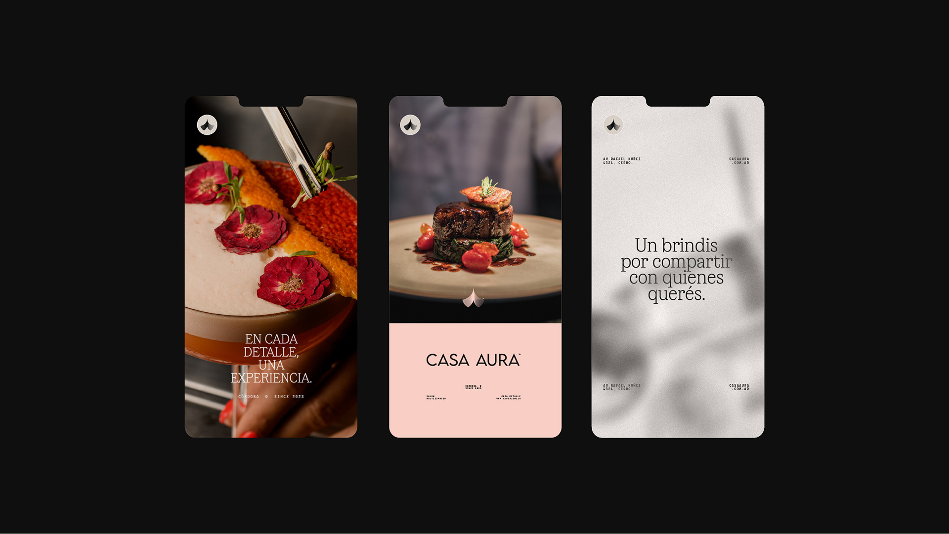 Casa Aura™ es un proyecto que fusiona Gastronomía, Coctelería y Organización de eventos con un espacio propio ambientado para crear una experiencia única. Buscamos en esta identidad reflejar el detalle, la sobriedad y la excelencia como punto de partida.