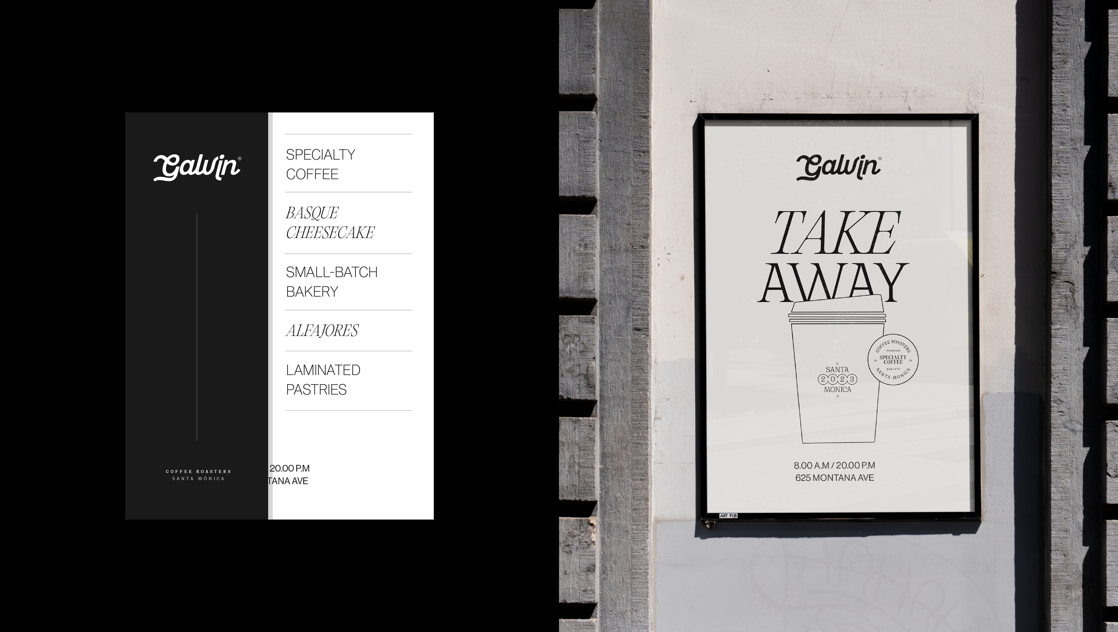 Galvin is much more than a coffee roaster in Santa Monica; it's a sensory journey from the first aroma of freshly roasted beans to the last sip. Our visual identity reflects this passion with a vibrant palette inspired by the energy of the city streets. Our logo combines elegance and modernity, conveying our dedication to quality and tradition. From the design of our packaging to our labels, each element tells the story of Galvin and its commitment to exceptional coffee.